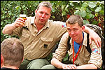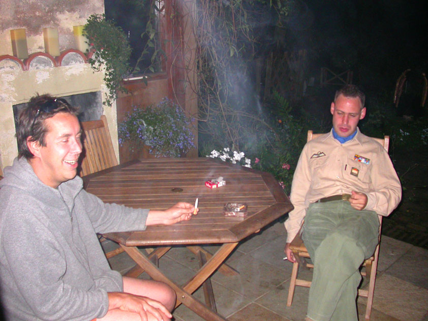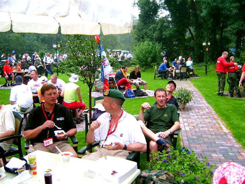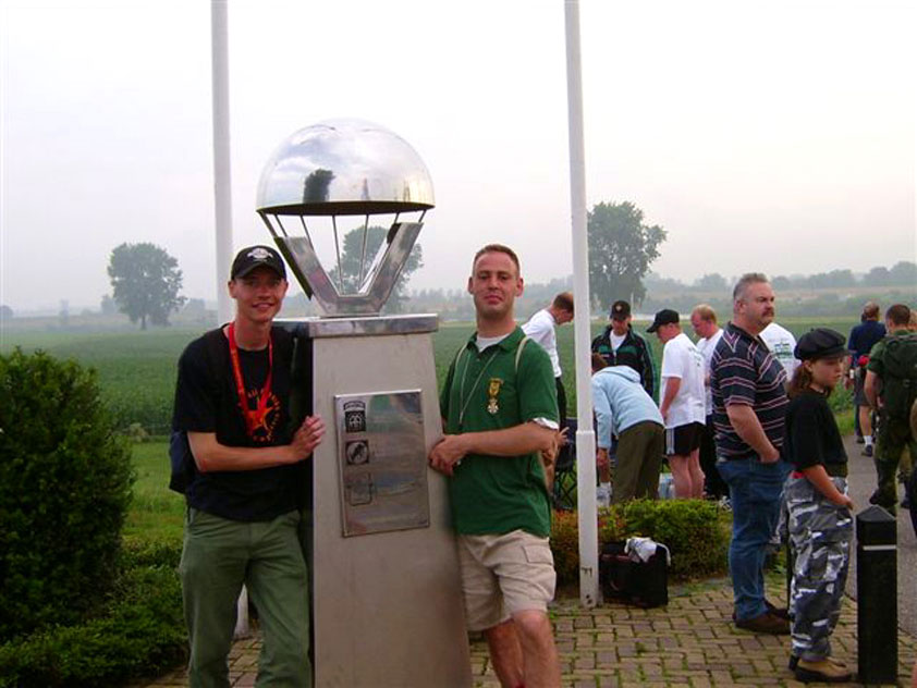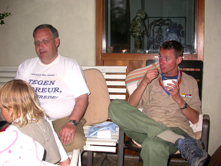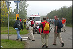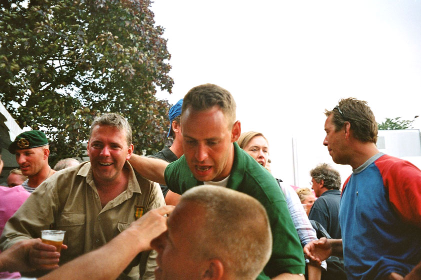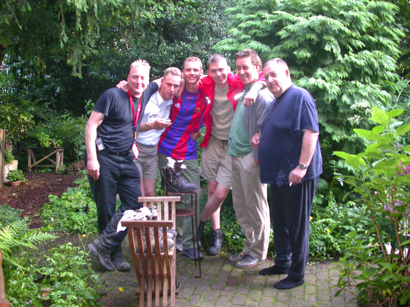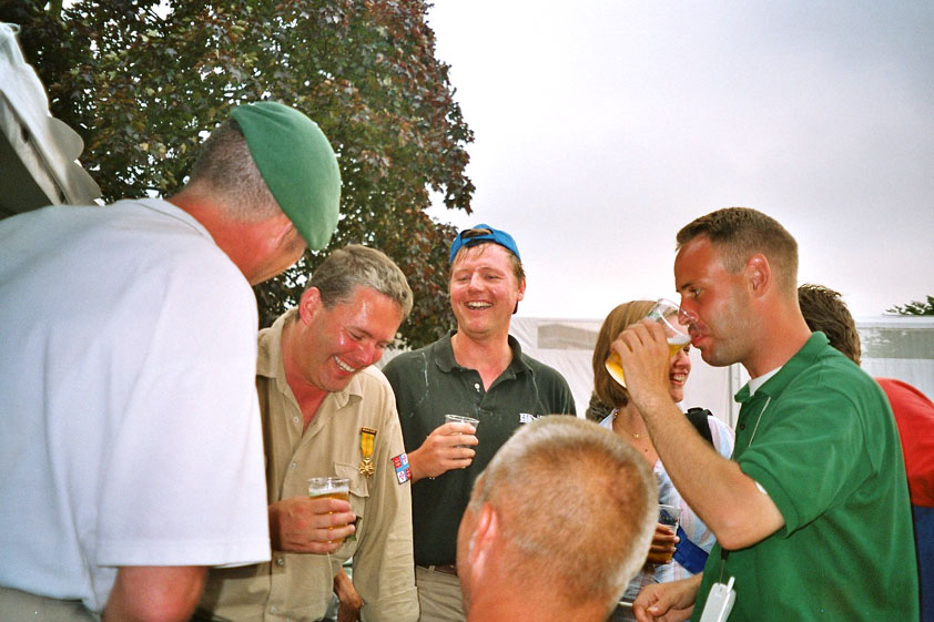 Day 5 I awoke the following afternoon. Considerably damaged (the total amounted to eight blisters, and I haven't had swellings so bad since my second MESA), but quite a bit refreshed. Today was a beautiful day. Not just because it was wonderfully warm summer weather, suddenly without the humidity of the bygone days, but also because of the past week. I therefore quite contentedly said goodbye to Lous and Jochem (expressing the wish to be able to meet Lous at the Airborne in Oosterbeek again), and drove to Groesbeek with Max, where we stopped to visit my cousin, his very pregnant girlfriend Kirsten, and their daughter Inge. Pleasant finale, to a week that went excellently. In Utrecht, we proceeded to deliver Schelden's luggage to Interpay, where he'd already gotten back to work, together with Raymond de Gisser, and then we finally made for home. Where my poor feet and ankles finally got the freedom they were promised, and so swelled to gargantuesque proportions. Whilst writing this it is twenty hours since that stopped - and we write, whilst writing this, August 8th, so two full weeks after the Four Day March (that I only write this report now, is because we've marched so much, in the previous months, that I had five reports to write in two weeks). Preliminary ending to the hardest marching season that I've yet had the pleasure to experience. These are great times. To your health gentlemen, excellent walking there. Bornem, dammit, awaits. |