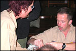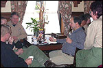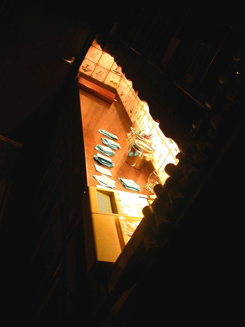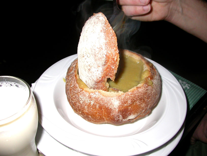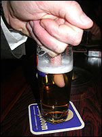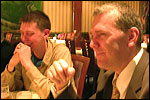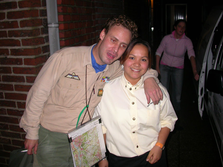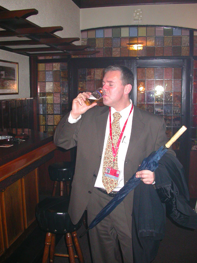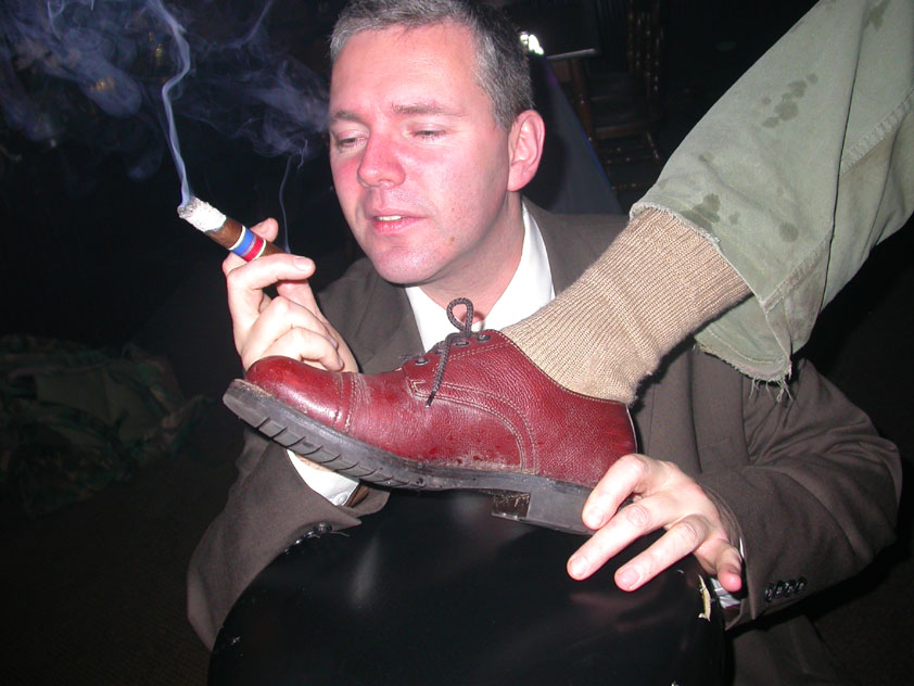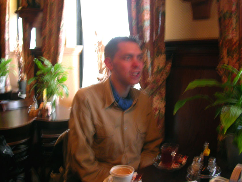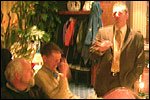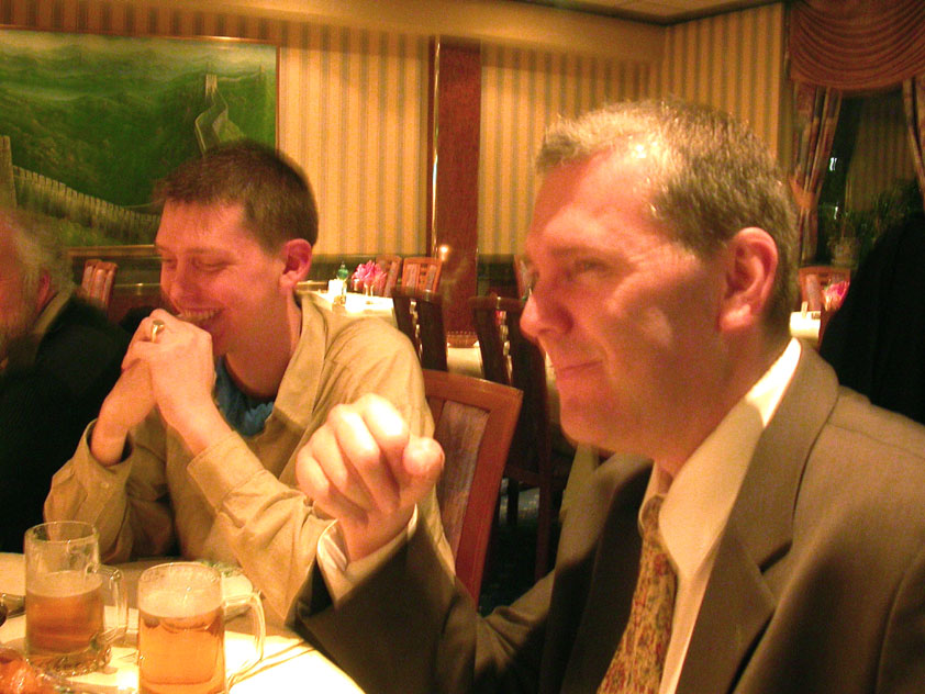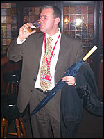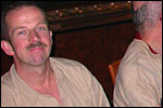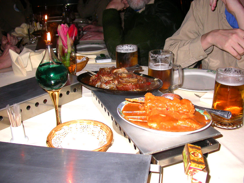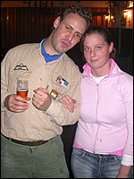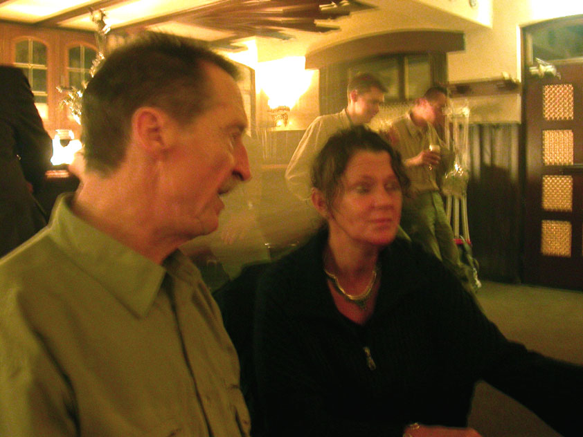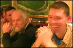 This, of course, was reason for merriment, which only increased as we moved up one establishment, to Café 'Het Wapen van Velden' (The Velden Arms), namely, and not only St. Nicolas passed by (what did that remind us of?), and not only Albert delighted us again ("Schelden! Shouldn't you unpack that lobster?"), but Fischer, at the end of a lavishly liquored night, also really did show us his dick! Weehee! Nothing out of the ordinary, by the by. Grossly exaggerated. Needs more work! Lavishly liquored, by the way, not in the least because Schelden made good on a promise here, by passing around drinks through tickets he'd prepared himself, beforehand. He'd thought of this to celebrate that we had reached Velden, but also that George Bush had been reelected (and he'd even made those tickets subject of a bet about that, in advance). Very nice, by itself, but oldfashionedly frenetic in its interpretation, of course. Because, as he had announced beforehand, those tickets bought you a beer, not a drink, apiece. So whoever desired to drink liquor, had to remember that each ticket was worth €1,30 (the price of a beer in the Velden Arms, utterly reasonable amount, of course) and then, according to Schelden, furnish the remainder on one's own. When I had thereupon said that I would pass on his tickets, because it would mean less of a hassle for me, he threw a total fit and hollered that I should not ruin his party. Heeheehee. I didn't, of course, intend to ruin his party - and I therefore, having bought a vodka out of my own pocket, made a festive toast to John Kerry. After which, to make up for it all, I drank ticket beer for the rest of the night, and did after all congratulate Schelden with George's victory. One has to be above certain things, at times, in this life, eh.