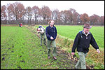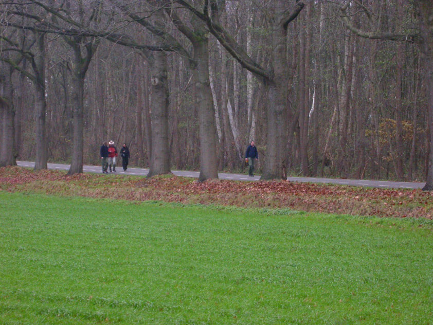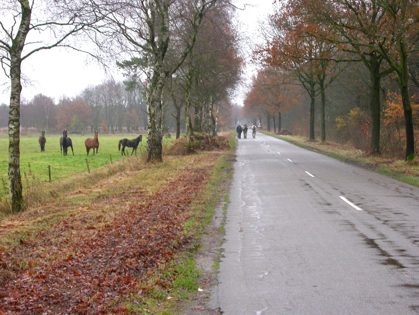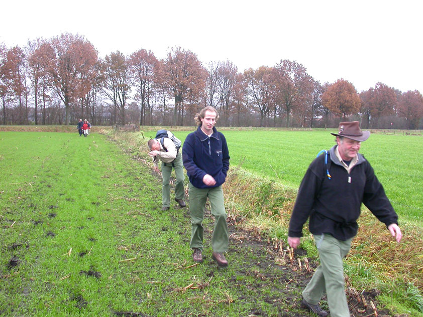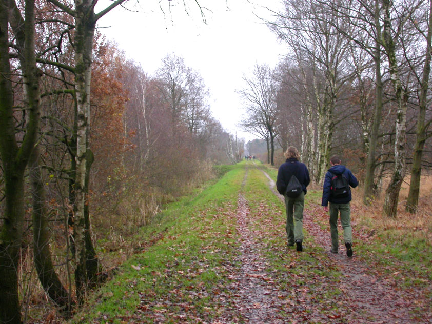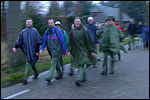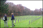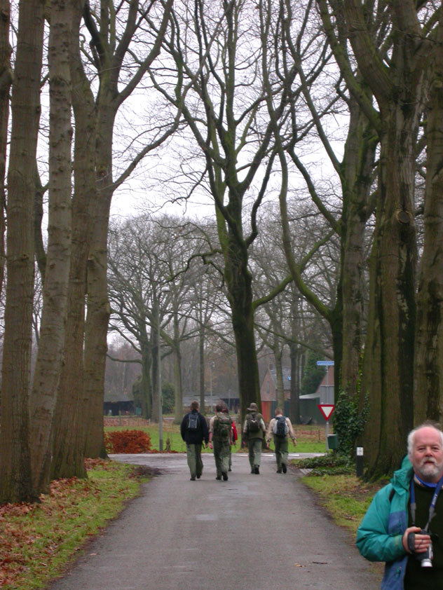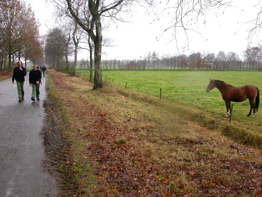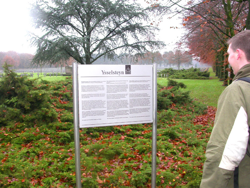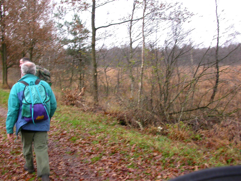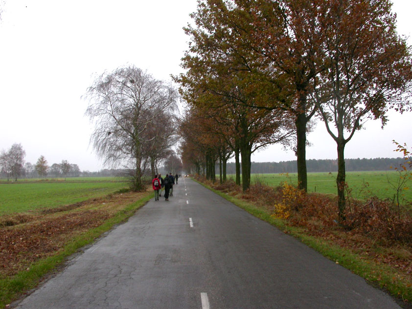 November 28th, 2004 Across the Netherlands from Top to Toe: Ysselsteyn-Velden The scales, from your eyes. Which was to be expected. Every Dutchman who's undergone a naturalization course or primary school, knows that Limburg is a pretty province. So that today would become a nice stage of 'Across the Netherlands from Top to Toe', was obvious. This had been a different affair the last time over. But just like that last time, we were again surprised, nonetheless, by the extent to which that beauty made itself felt. We, this time, were Henk van der Schelden, Marco van Zijntergen, Albert van Geyningen, Raymond de Gisser, Lourens Dinger, Fred Regts, Jan Middelkoop, Barend Rijkman, Dick van Kuppevelt, Anita Willemsen, Bert van Prijzen, Marjon van Dijk, Pieter Spaan, the newly recruited Securicor-colleague of Henk and Raymond's, René van de Bilt, and yours truly. And because, as ever, we started where we'd ended the last time over, we did so in the De Peel Inn, where we were again warmly welcomed by the excellent staff, that, this time, didn't supply us with food and drinks, but with coffee. Which didn't mean that we didn't eat or drink, because Anita brought along apple pie (she'd namely just had her birthday, on November 2nd) and Pieter immediately began distributing Stroh rum. Too merry for our own good, we therefore set off. God knew whereto, of course, or, better yet, Schèlden was supposed to know whereto: to Velden, namely. But before we were there, lots of things happened. And this immediately had a somewhat sobering effect. Because the first thing that happened (gift, by absence, of Peter Weij's, who had had this left for plan, as an extension of the previous endeavour, along the Peel-Raamstelling) was the Deutsche Soldatenfriedhof just outside Ysselsteyn.