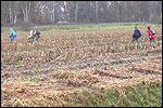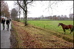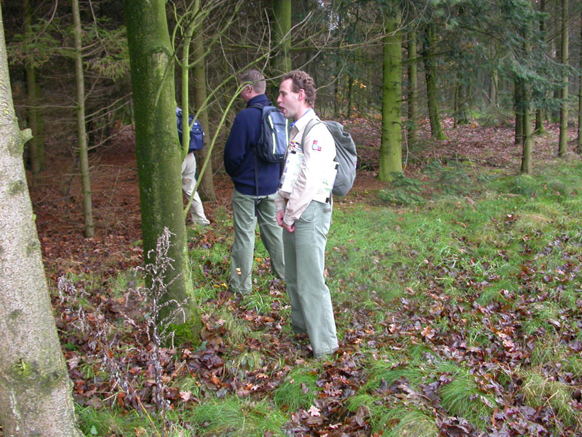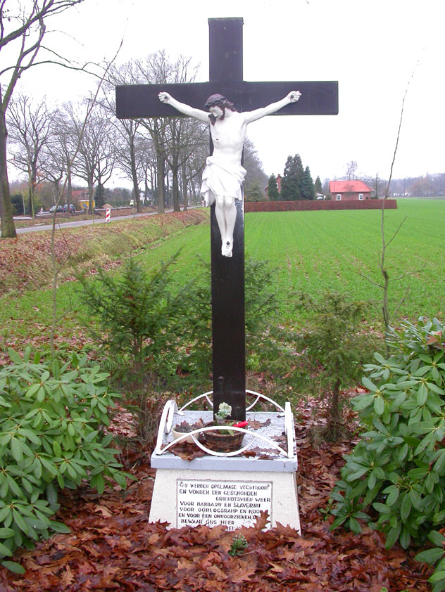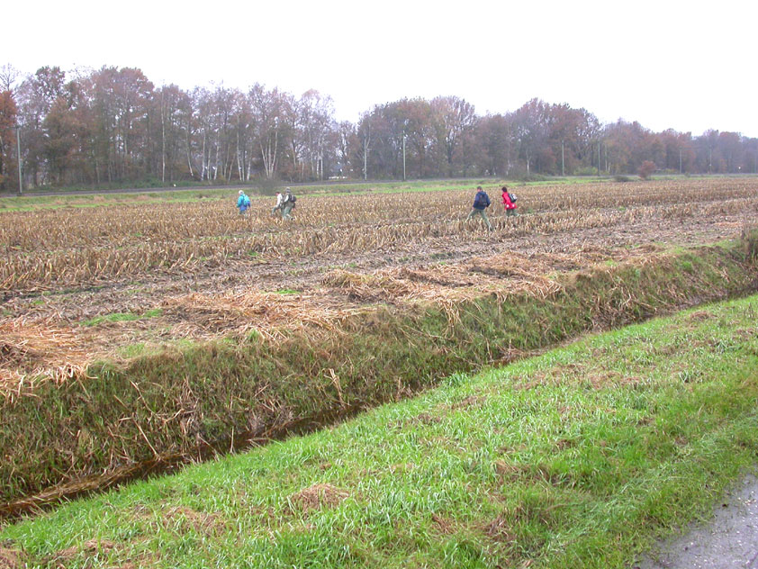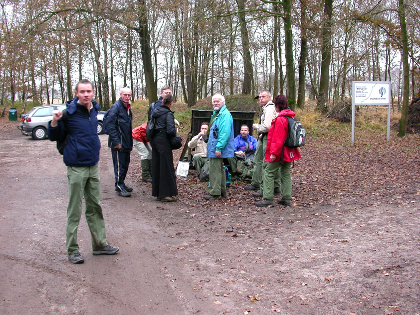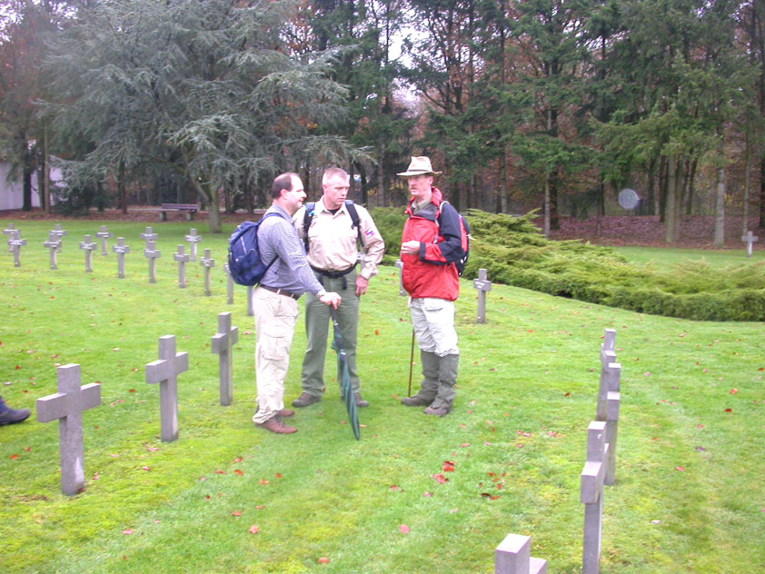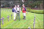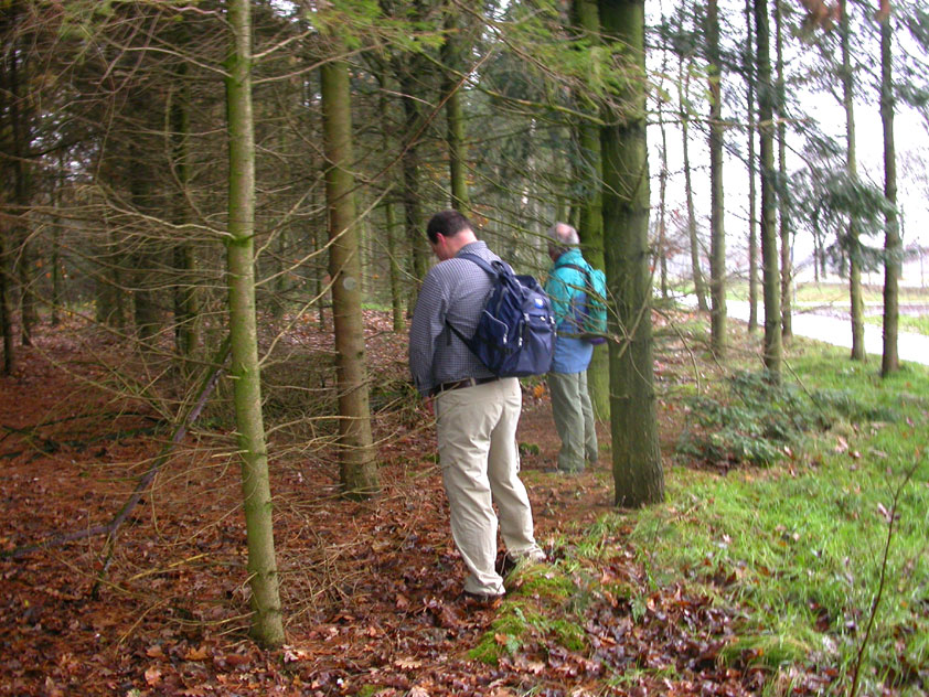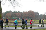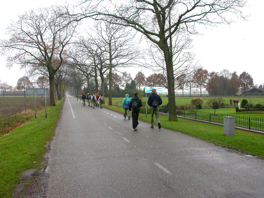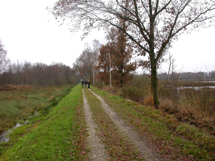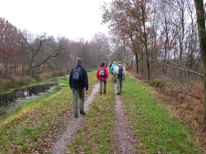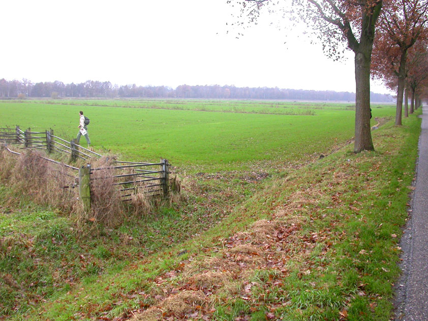 November 28th, 2004 Across the Netherlands from Top to Toe: Ysselsteyn-Velden The scales, from your eyes. Which was to be expected. Every Dutchman who's undergone a naturalization course or primary school, knows that Limburg is a pretty province. So that today would become a nice stage of 'Across the Netherlands from Top to Toe', was obvious. This had been a different affair the last time over. But just like that last time, we were again surprised, nonetheless, by the extent to which that beauty made itself felt. We, this time, were Henk van der Schelden, Marco van Zijntergen, Albert van Geyningen, Raymond de Gisser, Lourens Dinger, Fred Regts, Jan Middelkoop, Barend Rijkman, Dick van Kuppevelt, Anita Willemsen, Bert van Prijzen, Marjon van Dijk, Pieter Spaan, the newly recruited Securicor-colleague of Henk and Raymond's, René van de Bilt, and yours truly. And because, as ever, we started where we'd ended the last time over, we did so in the De Peel Inn, where we were again warmly welcomed by the excellent staff, that, this time, didn't supply us with food and drinks, but with coffee. Which didn't mean that we didn't eat or drink, because Anita brought along apple pie (she'd namely just had her birthday, on November 2nd) and Pieter immediately began distributing Stroh rum. Too merry for our own good, we therefore set off. God knew whereto, of course, or, better yet, Schèlden was supposed to know whereto: to Velden, namely. But before we were there, lots of things happened. And this immediately had a somewhat sobering effect. Because the first thing that happened (gift, by absence, of Peter Weij's, who had had this left for plan, as an extension of the previous endeavour, along the Peel-Raamstelling) was the Deutsche Soldatenfriedhof just outside Ysselsteyn.