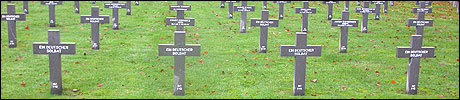 And it goes down hard, on an empty stomach. Endless rows of crosses make you think you're in Arlington, or in Verdun. And then conflicting emotions fight, for prevalence, inside. "Weeeeelll, we hit them harder than I'd thought" - and "But a shame this had to happen at all, of course". I overheard that all Dutch soldiers who fell in Holland during the Second World War are buried here - besides a small group from '14-'18. And if they are indeed all buried here, the number astounds, still. Endless rows of crosses marked 'Ein Deutscher Soldat'. Chilling.