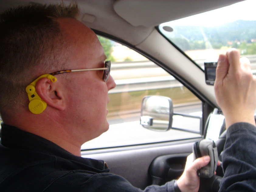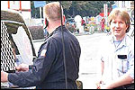 Normally, Edwin makes it a game never to grant guys like that any leeway and, if necessary, to do time for it. "Let them write me a ticket - they can't account for that, administratively, anyhow." For, he reckons, if we pay 20 euro a head, and the guy stops 3 of those foreigners a day (a Ukrainian, of course, only pays 1 euro or so, when fined), that makes him make more than us westerners, by comparison. Which is outrageous, given the poverty among the rest of the population. He's got a point, but we are part of a rally here. So when, shortly after I wake, we are stopped by a traffic cop for the first and only time, we do indeed pay the €20,-, because then at least we get to carry on. But first we have a pleasant conversation with him, explaining the rally, and my ludicrous garb. Where namely yesterday, with a view to the border crossing to be passed, I still opted for decent and unobtrusive black, today, now I know there are no more borders, I've crossed the border by donning my Yoghurt-uniform: blazer of bright azure, blouse with pink ruches, brightly coloured rings with fake gems of plastic, and goldcoloured rapper-pimpchain. The cop's confounded of course, but amused when we explain I'm a rocksinger. We get to go on, and he also informs us that, 12 miles onward, there's another hairdryer-with-cop-attached waiting for us. Handy! Things we like to be forewarned of! We amble past them at snail's pace. We really shouldn't have done that, we miss out on a golden opportunity here. Hidde van der Veer, not part of the rally organizing team, but so too, because he knew of the good cause and so arranged for it to be the rally's, had challenged us all, before departure, to be the first team that managed to get a cop to contribute to the good cause.