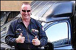I namely own two, so brought 1 along for Ed, and the other for myself. Seemed to me to be an aptly festive touch to the finish. And so we drive into Odessa in tux, and, following some aimless touring (during which I must almost use force to prevent Ed from getting a haircut), reach the finishflag with no trouble, having been led to it by a friendly local leading our way. The smokings cause quite a stir and are a success, so we happily hit the beer and burgers, at O'Neill's Irish Pub. We make pleasant smalltalk with a propster (one of those dames pretending to like you, but trying to get you to join her on a drinking spree in multiple catering establishments, because she gets a commission), and a man who arrives in an oldtimer. Beautiful set of wheels, so we make several group portraits in front of and around it.