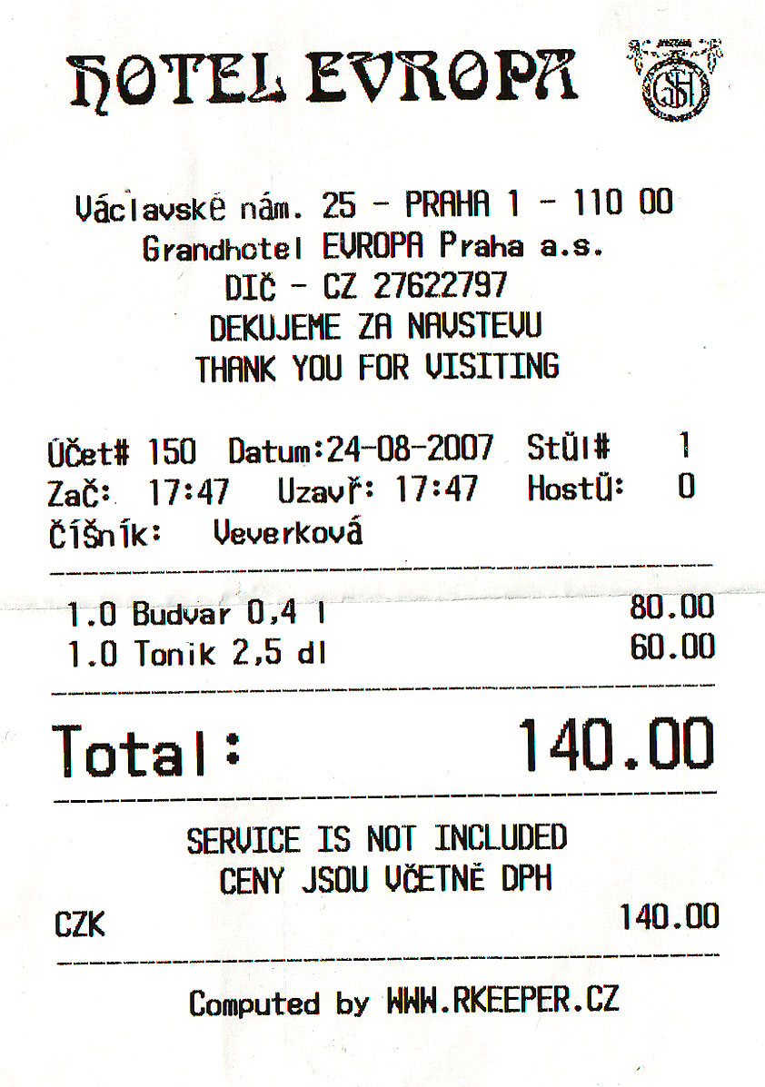 After dinner, the party moves to club Mish Mash, by taxi. At Ed's instigation, I decide to not join in: he'd rather walk there, through Prague, and I think this is a good idea, not just for digestion. I once got cheated heavily by a cabdriver, here (Prague is more spoilt than, for instance, Brno, touristwise), so I begrudge them any and all. Besides, more useful to see some of such a town, now you're there, than to tear through it in a car, right?
