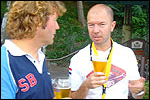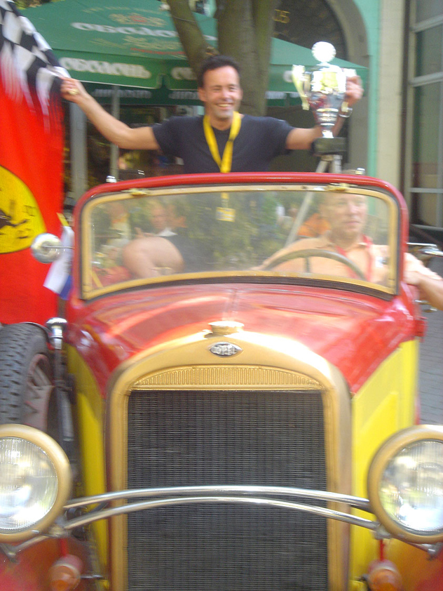 The Pirates namely finished in front of the 'Psycho Riders' every day (barring the last, when they finished together, Martin in the car with Aad and Tom at the finishline, no less) and even won a day trophy. Moreover, the Pirates, so far, collected 1000 euros for the good cause, whereas the 'Psycho Riders' at Balalayka reached some 100. And Tom was always last to leave the party, barring Kiev, as said. So those five hours should outweigh the rest? I have no idea as to whether or not this is possible. See I'm VERY bad at calculus. Certain, anyhow, is that Aad and Tom think it is not possible. And also, they are indignant about the fact Tom was told he was unbeatable before he went back to the Kiev hotel three hours and one quarter earlier than Martin - but I do not share in this, their anger, because I agree with the organizers that you are no longer unbeatable when you then let yourself be beat - and over the fact that during the last leg they purposefully held back and let others take the lead because it should otherwise be too easy for them to win (they even picked flowers, for that reason) - but I do not share in this, their anger, because I agree with the organizers that you no longer win when you let others get ahead. Looks, therefore, like Aad's been too much of a good guy.