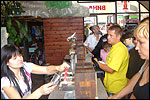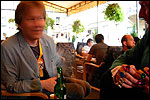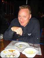 While Emily dines with the rich Chinese, we fi-nal-ly find a real cheap restaurant where the locals eat: it is packed with youngsters, and the food there is fan-tas-tic. We have the waitress surprise us with the best she's got, and so we enjoy, among other things, calamari, loads of different kinds of fish unbeknownst to us on an assortment plate, big shrimps and, above all, mar-vel-lous mussels. I've never seen them this big, and never tasted them so good, not even in Antwerp and Yerseke. Odessa finally more than lives up to its reputation as a port on the Black Sea. I happily flush the food down with a great stream of Staropramen (excellent Czech beer; Ed is most surprised that I'm able to glean that name form an enormous strain of Russian beer brandnames the waitress drones for me as possible choices when I tell her I want a litre glass of beer, but I've been to the Czech Republic more often than just during this rally, so that's why).