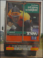 Then Ed and Emily hit the Itaka, but I am waisted, so I go to our new room, where I watch tv (a channel that exclusively broadcasts ingame sequences of new computergames; cute!) and phone Aad (who's arrived home safely and tells us that the returning teams are frenziedly mailing eachother); I fill him in on our adventures, so he can gleefully tell the rest of the rallypack that 'Team Taxi Adriaan has had another small accident'. Besides this, he promises us great highways in Hungary. "It is evident to which use they put their EU money", he says. He also has hilarious stories of their return through the Ukrainian interior, stories I won't recount here, because Aad's writing his own report. I am soon under the impression that the way back will be more eventful, for many of the teams, than the rally itself was. We learn, for instance, that Team 'Last Man Standing' eventually left its Volvo by the roadside for the highwaymen, because it gave out, and 'Great Balls of Fire' has had to dig the Landrover out of the sand on a beach. I seriously wonder what's coming to us... ...but happy with more adventure to come, I finally fall asleep.
