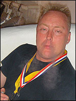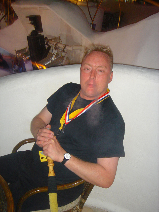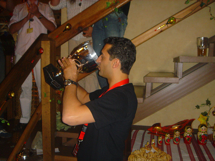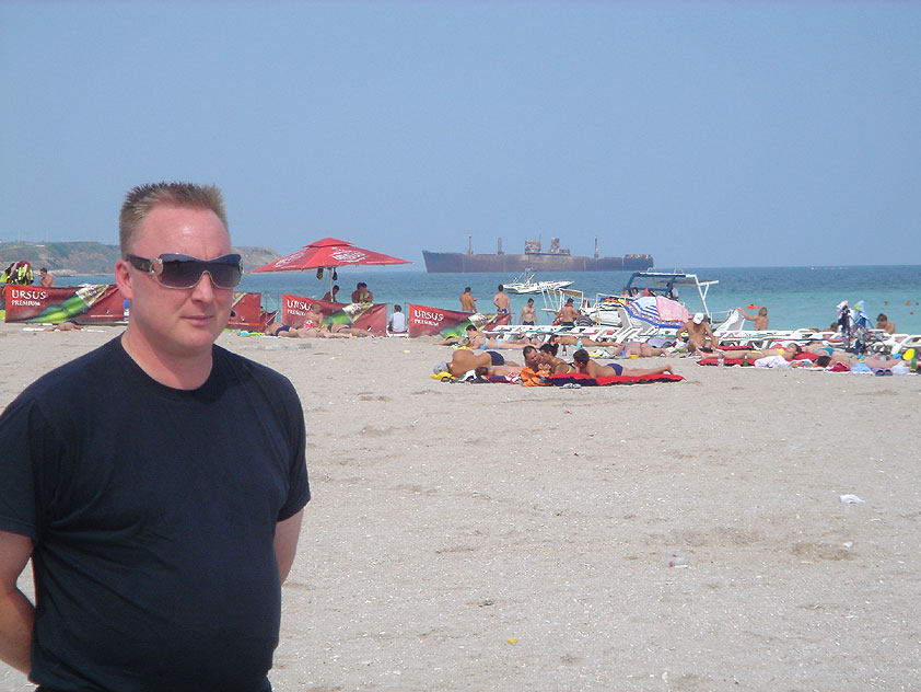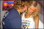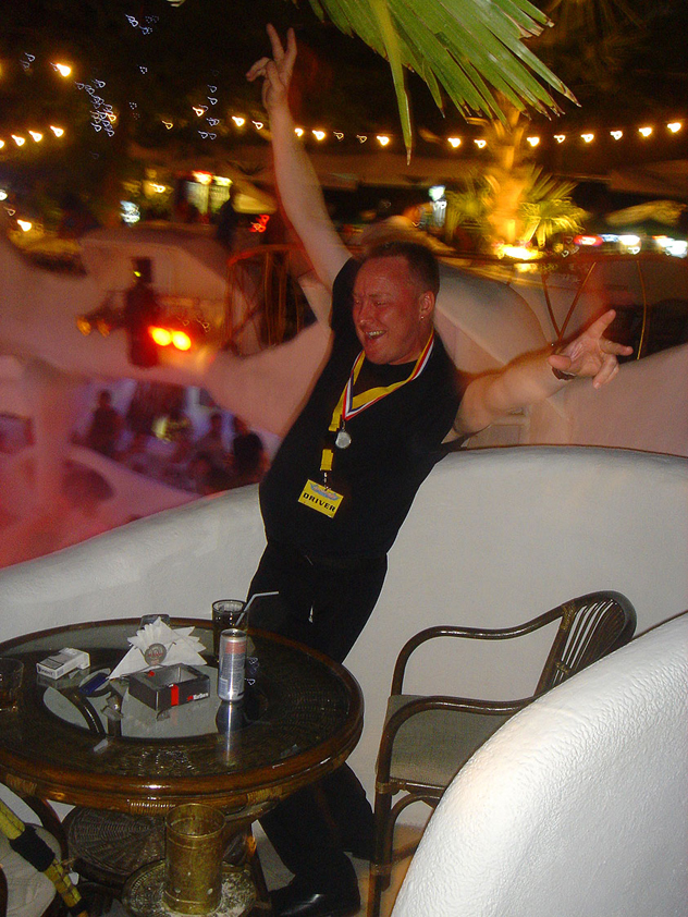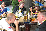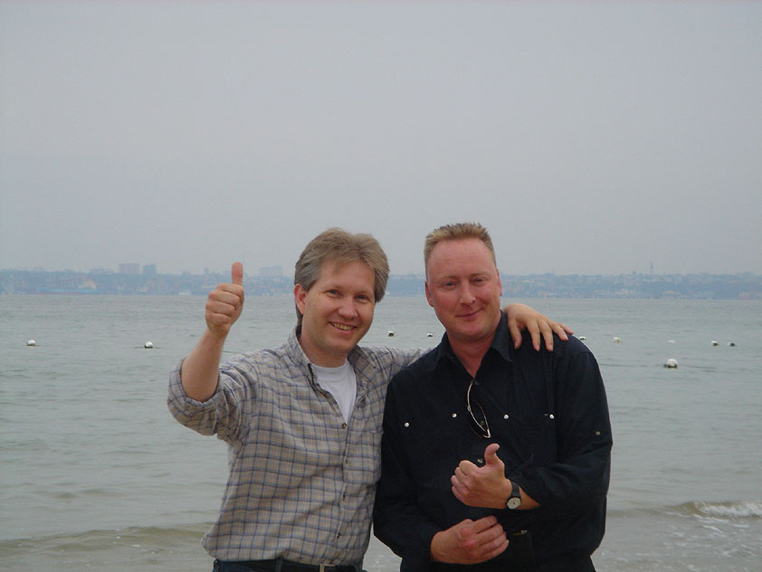 "What's the problem?", I ask him. "They've returned my phone to me", says Sybolt. "Good!", I say. "What's the problem?", I again ask the interpreter. "Sybolt, according to them, has promised them a €140,- reward for the phone, so they want that reward." I think "thieves", but I say "Sybolt, did you promise them that?" "Nope", says Sybolt, "I didn't promise them anything - but I did just give them 140 greebees in happy thankfulness, for finding my phone." "Ah", I say, and then, to the interpreter: "So there we have it. There is no problem. We shall now leave. Bye." The guard most briefly considers his options, then shrugs in disdain and turns around. "See", I think, as we walk away, "you were just conning the lot, little friend.". We head for the taxi stand at the front of Arkadia Beach, the part of beach that the Ibiza is part of. And we take a cab with, most unusual, a female cabbie behind the wheel. Her disintegrating Lada brings us back to the Black Sea Hotel without further problems, but when we've debarked there, Vince gets beside himself. "I lost my phone guys!" Me, to Vince: "Then you've probably left it in the cab. 'Cause before that you still had it, you were programming my number into it. Call it with Sybolt's phone." The phone rings, but is not answered. "Try again." The phone's dead, all of a sudden. "You've lost it for good, that's obvious. Gentlemen, I'm off to bed, enjoy your night." I leave a confounded Vince and Sybolt and return grinning, to the first hotel room, this journey, that I will actually honour by getting a full night's sleep in it. My mission is completed. Edwin's, however, is not: in the hotel's bar, after he's warned them not to raise the subject, but they have asked him for his opinion nonetheless, he throws a fierce fit over the race results in the presence of, amongst others, Erik and Roy of the Bokito's and Bas of the 'Psycho Riders'. Ed feels the 'Psycho Riders' did not rightfully end on a par when the calculus is done, and that even if that would be the case, they most certainly wouldn't have, for reasons I cannot state here (that 1 of the 2 'last men standing' used pills to keep it up in Kiev and, in the Balalayka, announced he would do the same in the Ibiza, is a rumour I can confirm nor deny - and one can ask oneself who, among the partypeople, really scorns partydrugs).