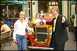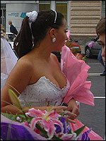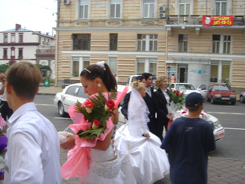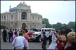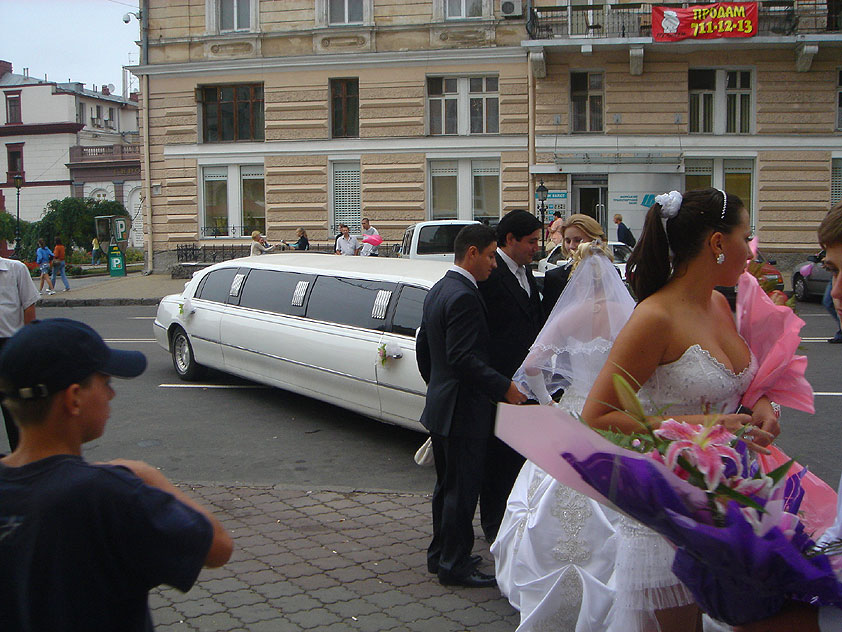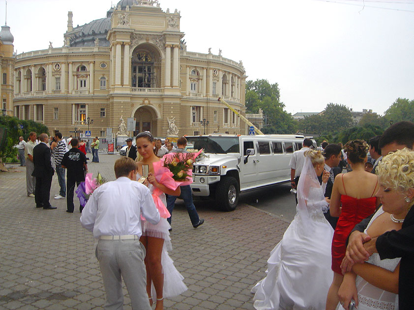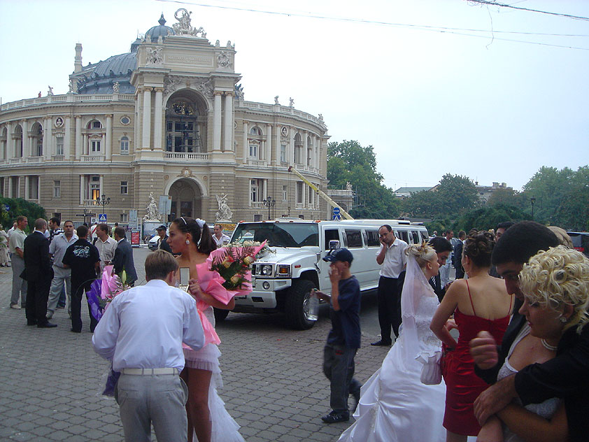 Day 8 08.31.2007: Odessa The following morning, we do dear again: for I off oatmeal again, in the hotel. Then we wander around town once more. This walk takes us past, among other things, the theatre, where below the big dome birds of prey apparently nest - their cries have bellowed over town for days, amplified by the architecturally sound arches. Next to that theatre we discover a wedding factory, where at least three marriages roll out and into white stretch limousines within five minutes. Lo-ve-ly ladies, not just because of their dress, and the most beautiful ones aren't even the bride! Amusing, also, that when a child pops a balloon some six alarmed, furrowed faces of men turn around, checking things out with a trained eye: armed conflict, this close to Caucasia, is never far off.