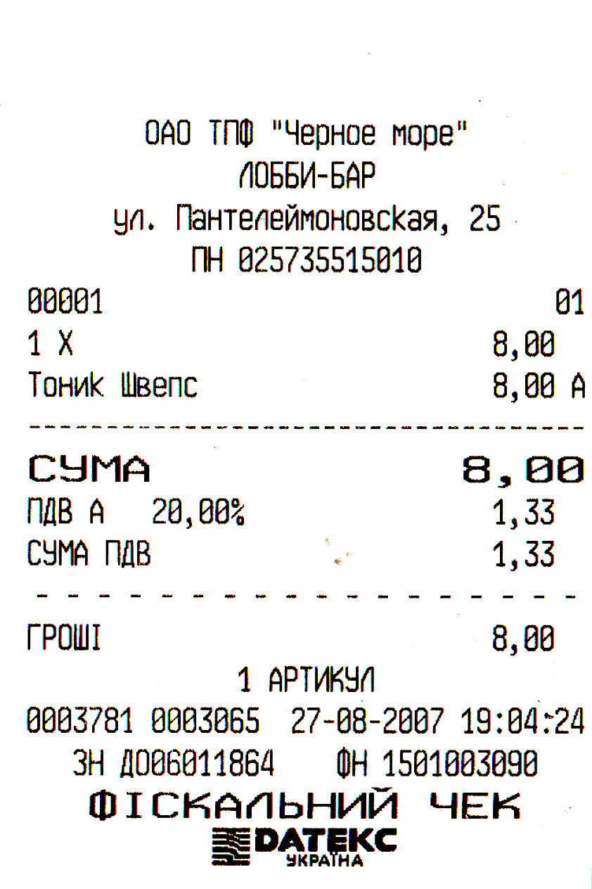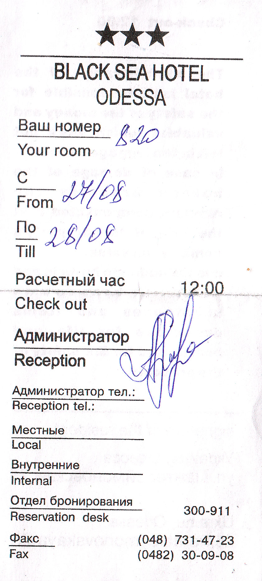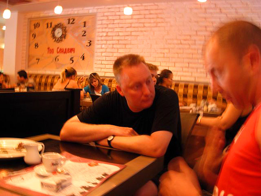 Day 5 08.28.2007: Odessa Having woken because of the returning Edwin, I learn that Aad and Tom have just left the hotel for breakfast. I decide to run after them, and we have it together, in a much too expensive, but otherwise fine western restaurant just down the street. And I pay it for them, because I feel that they've earned themselves a present, being the true winners of the Rally (for let there be no doubt, I too think that they are).