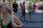 Right. I establish that the city I once took a horse-and-carriage tour through with Max, is as beautiful as ever. We amuse ourselves over an unusual work of art: an enormous pump, decorated on the inside with a painting of a voluptuous woman. We admire the view of castle Praha from the bridge across the Vltava and, after climbing the hill, settle down in a beergarden, with drinks we buy at the stand that is there for the purpose (alcoholfree for Ed, of course). "You don't get this anywhere else", beams Ed. But I remember that this is the spitting image of the beergarden-above-the-abyss, on the Aare in Bern, so I tell him that. It is no less enjoyable because of it. As we stroll through the borough behind the beergarden we marvel at a small Dutch cheese store (No kidding! With outlets here and in Amsterdam, as it turns out!). At the door to club Mish Mash we are refused entry. That is, we are free to go in, as long as we pay the full entry fee. This is against agreement, we have paid in advance, after all. Thieves, those doormen! They look like newly released criminals, all of them, anyhow. I text Adrianus, he takes action, and shortly thereafter the Belgian contact of the rally-organization here arrives, who then gets us in at his own expense, claiming he'll settle this score with the club owner later.