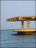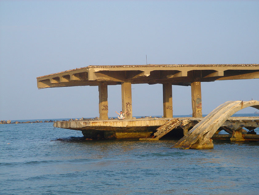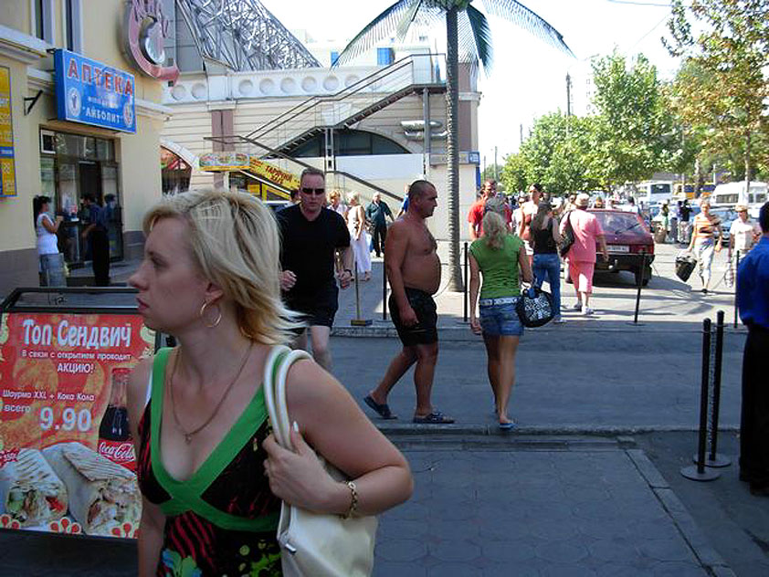 We watch it all from the best spot in the joint: the utmost top right, where, with one's head in the breeze, to one's right one can look out over the boulevard (where yesterday grandma was housing away) and the Black Sea, and in front of one the entire Itaka is at one's feet. As Ed and Scott storm the dancefloor, Jan-Willem and I enjoy no end: not in the least because of the beautiful women. We get for free what I still had to pay for in L'viv: a poledance-show without pole, of at least three beau-ti-ful ladies. "I never want to leave!", Jan-Willem sighs. Not a bad thought - but those ladies are a bit fake. The lurid dancing means to lead to something. And that something soon unfolds: the lady dancing the most randyishly achieves eye contact with us and some people around us, and immediately a strapping black-clad fellow pops up next to her. The message is clear: you can have her, but only for a while, and for money, to be handed to him. Two older gentleman, seated slightly below us along the ring, eventually answer: they wave with money and sure enough, the lady leaves the club in their company, the tall one in black on her heels, who proceeds to pocket the money and then happily returns to the dancefloor. As does the lady, about a half hour later, and then the seduction begins anew (as, by the way, happened the days before in Club Ibiza: there too, 'professional' girls danced hornily in hopes of hooking a paying customer). Ed and I, meanwhile, find Katya again, the recently plastered Russian girl with whom we walked home from Arkadia Beach the other day. She's stonesober now, and turns out to work in Itaka, as waitress. Jan-Willem meanwhile meets a young lady he's met in the Ibiza, and she joins us with her friend. I, in the meantime, enjoy a waterpipe, champagne below, cherry tobacco on top. But when Jan-Willem points out to me that, atop the table in the wind as it is positioned, it does burn very quickly, I decide to put it on the floor, out of the wind - and accidentaly drop it, because it takes me too long to realize that the liquid reservoir is not screwed tight to the rest of the pipe. Manifold mirth, and thankfully all ends well and I get to smoke my pipe after all. Then Scott and Jan-Willem bid their farewell: they set off the following morning, and want to get a good night's rest before a long day of driving. The ladies seated with Jan-Willem now clearly prove to have been interested by his money: for now he's gone they too make a break for it as soon as courtesy allows. Somewhat bored with the greed of women I let my gaze drift elsewhere. And then the scales fall from my eyes. Next to me, aside the tree on the boulevard, I suddenly descry three ninjas. I swear to you. I pinch my arm to check whether it's true, but I swear to you: it is true. Three ninjas. I think: "What weird a waterpipe was that", and pinch my arm again, to check if it is true, but I swear to you: it is true. Three ninjas. Two fellas, one with boobs. One of the fellas hasn't yet lowered his facemask. He looks like an ex-Spetznaz-dude, with an insectoid tattoo in the neck, and he's smoking a fag, whils talking clipped and tersely to the other two. Then he turns seaward, flicks the still burning stub, with two fingers, onto the beach in a smart arc, and then pulls down his facemask. Resolutely, the three turn, and they run past below me, towards the beach, and disappear in the dark. Did I just see what I did just see? I don't believe it whatsoever. I think "They're going to kill someone" and "When I tell Ed this, he's never gonna believe me". Thankfully, Ed is still on the dancefloor somewhere. I decide to do careful reconnaissance. I walk the entire length of the Itika to the john, and, from there, cautiously through the gallery along the beach, all the way from the far end of the club. No sign of murder and mayhem. No blood-curdling screams, pistol shots, death-rattle or otherwise. Just the murmur of the sea, the animated chit-chat of the ravers, and the upbeat beat of the music. Until I step onto the uppermost part of Itaka, between the greek columns, and peer down onto the beach from there. Ninjas! I wasn't mistaken! There's at least six of them! One of them's not in ninja-garb, but in petite swimming trunks, doing a long leg of swimming outwards into the sea, diagonally away from the pier, and the rest busy themselves with the menacing negotiation of a just so menacing fitness course, set out with legs of wood: they take turns running up a diagonally placed plank, balance on the end of it, and then jump down from it - to, with a firm 'ptok', plant a very large knife into a pole, representing the victim, at the opposite end of it, during the jump. Amazing. Ninjas at practice. And they've got an audience too. Because I'm not the only one watching: they are also followed by a couple having a romantic dinner next to me, and by some 10 to 12 Odessians thronged together along the boulevard outside Itaka, AND by two cops. This somewhat settles me down: apparently this is all normal, since the cops don't budge, and even observe the performance somewhat smirkingly. I get Ed. He's as stunned as I am, but he can't but believe me, because he sees it too. Ninjas. I swear to you. Ninjas. That we return to the hotel is certain. But I cannot remember how and when. I am too befuddled. Ninjas. I swear to you. Ninjas. Day 7 08.30.2007: Odessa Today we go hunting. What we need are a mirror and a launderette. 'Cause I think it's all fine that Ed wants to hang on (I think this should first and foremost be his holiday, he's the overworked one after all), but I can't see what's riding to my right and I must now start doing the laundry, or I am no longer human. We drive through Odessa all day, and see all kinds of things. Complete new neighbourhoods are thrown up, southward along the seafront. Large, detached, square barns of houses, with a large garden around it and a wall around that. For privacy and security, and if it isn't 