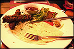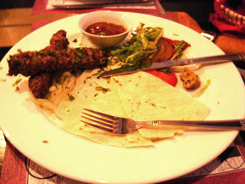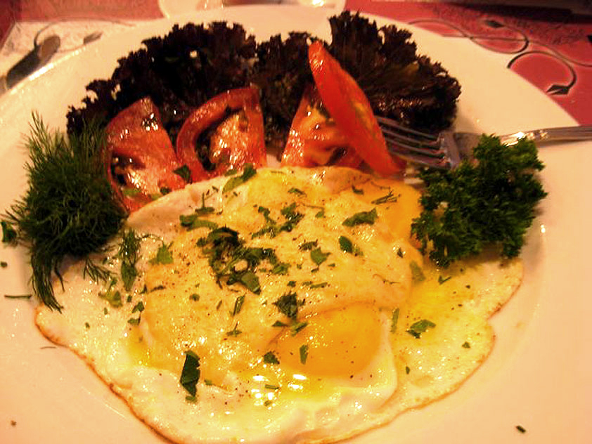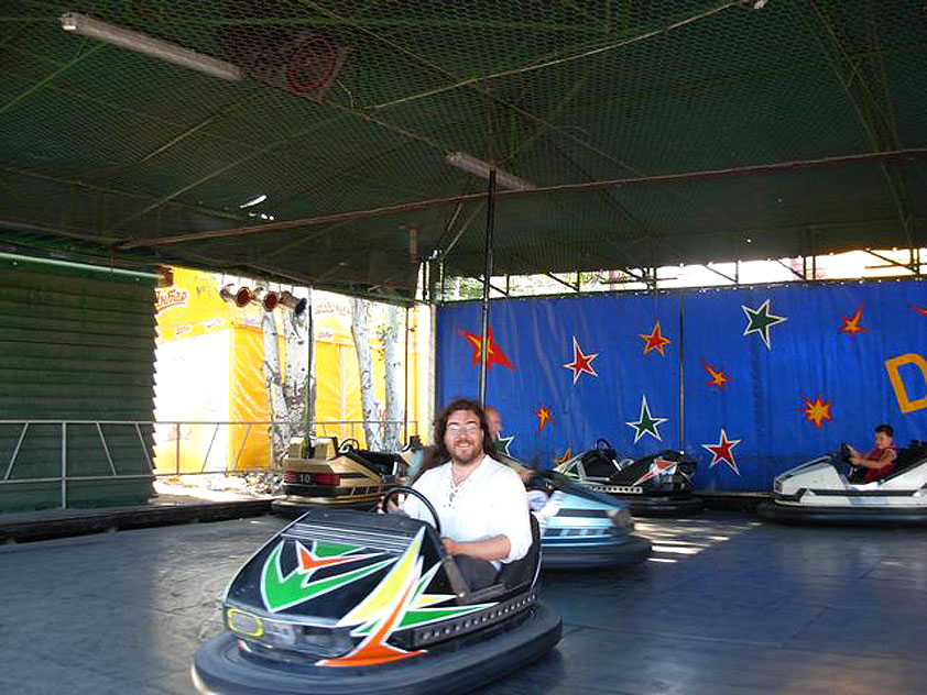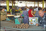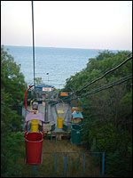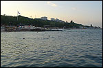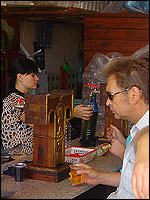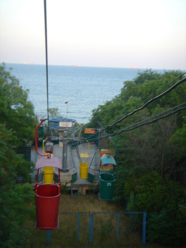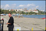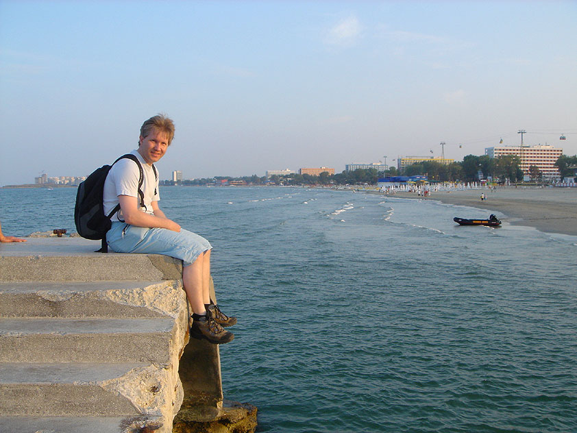 In any case, a local in a kind of riding bomb pulls over. "Have a seat there. Please don't smoke, 'cause all that below your seat is gasoline!" He faultlessly takes us to where we want to be: a beach with real locals. There, Aad and Tom take the bumper cars for a spin, we parade about some, I buy gross sunspecs and we don a beer, before heading back to the hotel. We have dinner together with Ed in the best of three restaurants with local food of which the names were written down for me by the Black Sea Hotel receptionist, restaurant Kumaneç. Excellent food indeed, in Russian style: small portions of all kinds of foodstuffs, the stuffed dumplings that are part of the national cuisine in the Czech Republic too the absolute high point among them.