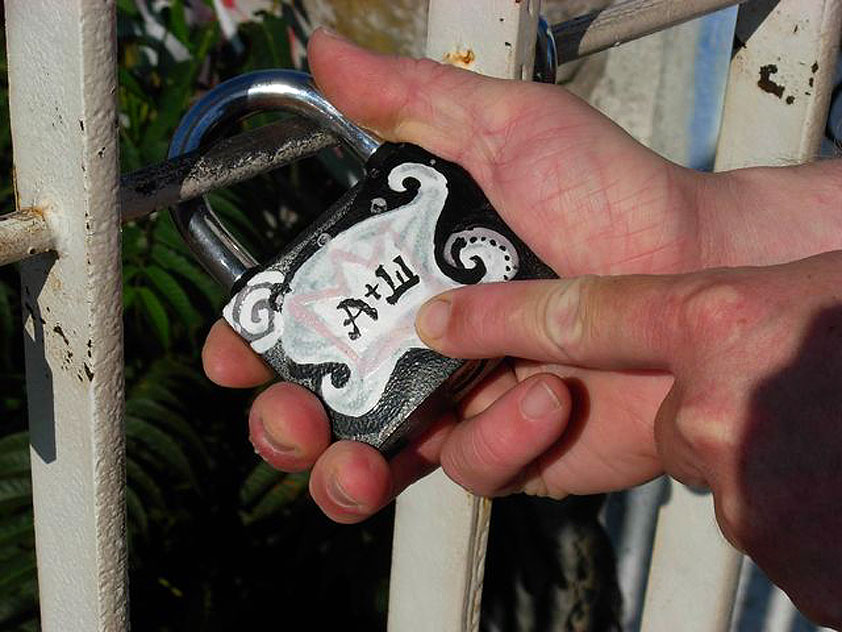 We trundle on, along the harbour front, across, amongst others, a bridge to which lovers apparently affix a padlock with their initials or names engraved at a special occasion (Engagement? Marriage? Breakup? Who knows? The bridge is full of them.), and shortly thereafter decide we'd like to go to the beach. So we wave down a local. A local? A local. There namely are official cabs in Odessa, but if you just stand by the roadside and expectantly point at the driveway, a random car will stop, and you negotiate a price for wherever it is you want to go to. I will wonder, for years to come, whether such locals are coincidentally on their way to grandma and stop when they see such a stop signal, or spend their entire day looking for rides. No idea.
