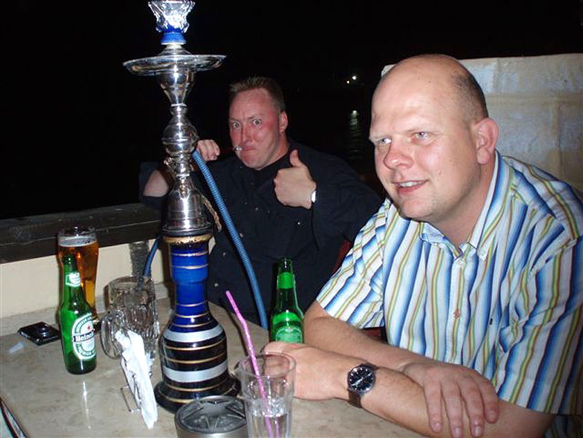 Great. Even the fact that we run through the free booze Farid arranged fairly quickly does no detriment to that. And Farid is not to blame for that anyway, by the way, because our thirst is great, after such a long dusty day of driving. And so we have great fun. In the end, I am te last to return to the hotel, thus winning the partyleague for the night (and so completely, because the other two nights it was a draw between me and the others remaining) - but nobody sees that, because the remaining organizers have by then long since left with those left, when I wasn't paying attention but haggling on that beach with that guard. Doesn't matter, because the organizers later believe my story, when Erik comes around to jot down everyone's end time.