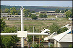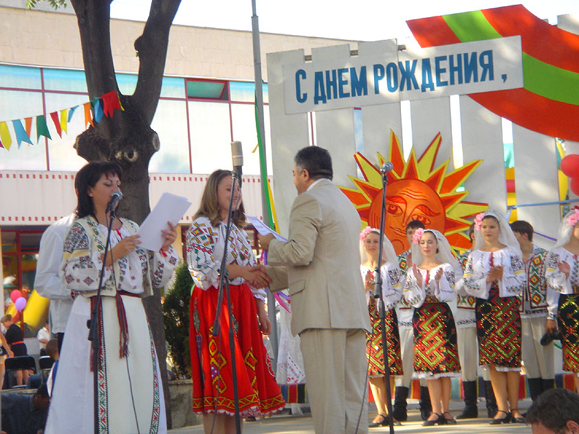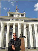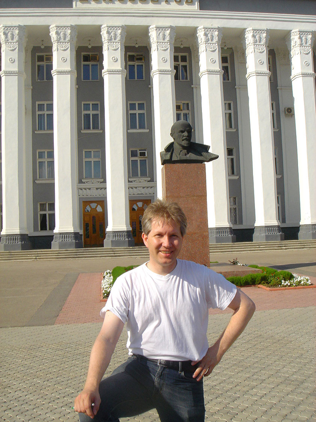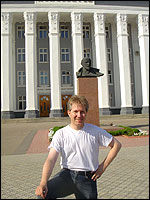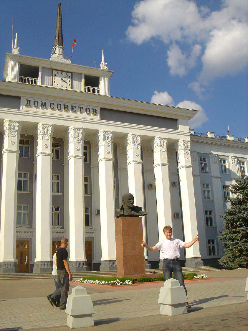Day 10 09.02.2007: Odessa-Tiraspol-Chisinau The next morning we drive out of Odessa at last. As we breakfast on bread and sausage in the car, I contentedly steer it onto the sunsplashed road to Tiraspol. Tiraspol? Tiraspol. Tiraspol is the capital of Transnistria, Pridnestrovskaya Moldavskaya Respublika in full, an autonomous state that violently seceded from Moldova in 1992. Looking from Moldova it lies on the far side of the Dniestr, hence its name. The PMR has its own president, its own money, its own stamps and an army, but noone recognizes its existence, except Putin's Russia. If you're born with a Transnistrian passport, you're stuck well and true: 'cause you can't travel from there because noone recognizes it, and you can't even go to Russia, because it doesn't border it. Russia recognizes it because it stands to profit from a country of which it can deny being involved in anything that happens there. But that it does is certain, because most of the people there have Russian passports. This I was told by Peter Bruyn, journalist friend from Haarlem, who travelled there twice, once for Rails, the NS-magazine. He also told me that Transnistria has three kinds of industries: metal, textile and foodstuff. We're talking arms, fake brand clothing and cigarettes. Peter ran into weapons buyers of Al Qaeda in a discotheque there, and into a soccer pro from Ghana. See, the Tiraspol mob is so rich that it has bought a pro soccer club together, and has erected a bloody expensive soccer stadium, where, would you believe, Orange has played a match against Moldova, because the stadium in Chisinău, the Moldovan capital, was much worse. And this Ghanean, at the first possible opportunity, wanted to come to Holland, where his brother plays for Twente FC, I seem to recall from Peter's story. So I MUST go, to a country like that. Ed thinks I'm crazy, but does tag along. And so we drive towards Tiraspol. The road looks like it's been made for my favourite racing game, Need for Speed: two lanes, wide, with low shrubs on the left and right, and ferociously backlit by the sun. I enjoy my ass off, especially since there's almost no other traffic. Who wants to go to Transnistria? At the border, not many people turn out to want this indeed. The rows aren't long, so we're pleased. This means it's our turn soon. But we are in for it big time. We are awaited by a big, muscled customs officer. He looks, particularly, like Duke Nukem. "I'll rip off your head and shit down your neck", that Duke Nukem. He doesn't have to say it too, I already believe him. He speaks fluent German because, he explains, he's worked in Germany for a while. That we can understand him does not work to our advantage: he makes life very difficult for us. He namely feels that we ought to have a police statement pertaining to the visible damage to our car, to prove that this damage was not incurred in Ukraine, and he explains that without one, we cannot leave the country for Kisinev (Russian for Chisinău). We explain that we incurred the damage in Poland, and that upon entering Ukraine, noone told us anything about such a police statement. It doesn't soften his heart. He presents us with two choices: driving back to the nearest hamlet and buying said statement from the police there ("and I'll have to bribe those officers too", I think), or leaving the country through the border checkpost we came in through ("that's some 450 miles back, via Kiev and L'viv to the Polish border! He's out of his mind!" I think)). It's all bullshit of course because all of us understand what he's on about: he just wants money. But now Ed is adamant: there will be none. He elaborately explains that we drove to Ukraine for a good cause, that our money is needed for that, more particularly for a hospital in the Rumanian city of Braşov, where we have yet to go to. It's a lie, of course, but if he can lie, so can we. Ed is so tenacious that in the end he gives up and lets us go without paying, but does menacingly say "I will file a report!". Phoowey. Nice getaway. But we ain't there yet. Ten yards further up stands the next official: the one who will take our car apart. In the burning sun we line up the entire content of the car on concrete benches put there for the purpose, and fill out an incomprehensible form written in cyrillic. And you have to do this diligently too. 'Cause if you fill out 'I have no mobile phone with me', but they do find it on you, you're stuffed. You must also state how much of which currency you're carrying, and eventually Ed has to come inside with them to show this statement is correct, by showing them his wallet. Which, of course, is nothing but an entree for what it's really about: he eventually buys the guy off for 5 dollars. He namely carries some by coincidence. We repack everything, but then we ain't there yet. Since this was the Ukrainian side of the border. Now for the Transnistrian one. It starts with another commanding customs officer, this one right out of 'King Ottokar's Sceptre': in a green uniform, with a big flat cap and an oversized mustache. His creepiness turns out to mostly be superficial: he benignly waves us on. But he does direct us leftward, where we turn out to have to park at a separate customs office. It's for them to better swindle us. In the row to our right, the locals waiting for their own border crossing look at us both pityingly and jealously. I soon understand why. We're supposed to buy two visa here. One for Moldova, valid for some 90 days, and one for Transnistria, valid for just three hours. Transnistria, of course, is some 190 miles long, but only 20 miles wide, so that should be doable. Except that we know that those visa were abolished per January 1st of this year. We're being swindled, therefore. We do not give them a hard time about it, because it will all take much longer if we do: we make it out by paying 20 euros. And so we're only three hours further before we drive into Transnistria at last. 