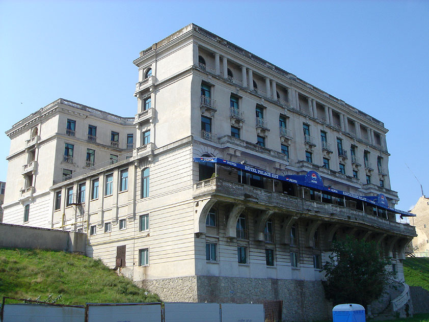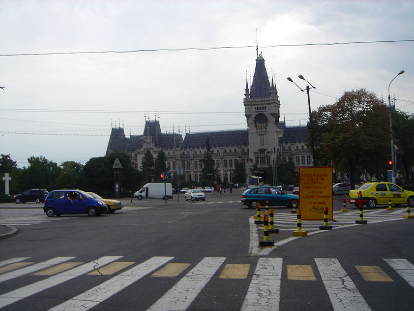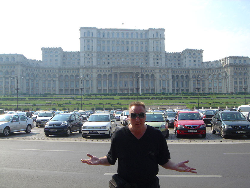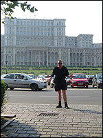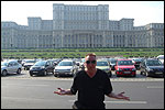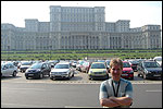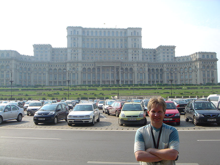 We marvel, on the beach, at what in Ceauşescu's time most probably was a very hip pier-restaurant to the apparatsjiks, but is now a concrete ruin which would also be outlawed in Holland, due to safety hazard. Back in Constanza we refresh ourselves at the hotel, and then we set off for the restaurant we discovered earlier during the day. It sadly turns out not to be one, but just a bar, so having had a drink there we leave again (pity, pleasant garden to be in). We eventually eat quite close by, on the far side of Constanza's main drag, at a fine steakhouse, which after dinner delivers a bill headed "Pizza e Pasta" (apparently they forgot to fill in something where it says 'Your restaurant's name here'). But they serve great food, and there's Leffe to accompany it. Nice ending, to a long day of pleasure. Day 13 09.05.2007: Constanza-Bukarest-Sinaia Pleasure continues next morning: Ed enjoys breakfast this time. Then, we find the condition of the outside of the Palace-hotel is pretty bad after all: the terrace we had breakfast on, when viewed from the harbour, awkwardly hangs from the back of the building. But renovation is imminent (we can deduce from the freshly renovated interior), so it will probably all be alright, in the near future. We run into a dead end, at this back of the hotel, and so have to turn around to get on to the road out of Constanza. Our goal is Bukarest. I want to look at Ceauşescu's palace, and Ed wants to look up his acquaintances. Acquaintances? Acquaintances. Edwin used to work at the Carlton Square Hotel in Haarlem (now a major client to his own Taxi Adriaan), and in so doing, ran into Claudio - a Rumanian who was in copiers for Ricoh and came to Holland off and on to follow training. They became good friends, and so, now we're in the neighbourhood, we pay a visit to his family. His family? His family. 'Cause he isn't there himself: he's on holiday, in Greece. But Ed knows his family too, since he's visited them twice already. En route to Bukarest we only find out by the time we reach Slobozia that there's a beautiful new highway, the A2, between Constanza and Bukarest, and that we therefore could have forgone the secondary road with all those roadworks and all that truck traffic. Pity, for we needlessly lose a lot of time. But, never mind: now to take it from here. "There's something missing!" "What?" "Haven't seen a horsecart yet!" It's a beautiful highway. It's like driving down the A9 - without any traffic around you. Wonderful. We drive into Bukarest and park some 30 yards from the offices of Roel Copiers, Claudio's company, which he's handed over to his father and brother Gaby by now - we meet them both there. Over a cup of coffee we discuss soccer (Gaby is as much in awe of Orange as we are of the Rumanian team, and all of us hope that Orange will beat Bulgaria in 3 days time), Claudio's new enterprise (he's trying to, in Germany, sell a system that, just like the Alcas one, supplies music to the catering industry - but comes with video; it's not a hit yet, but you have to start somewhere eh, and if you already have a well-running company, it is of course always possible you get bored), and anything else that comes to mind. I ask Gaby, for instance, what the deal is with those Constanzan hotels. He explains it's all money laundering, and that Constanza does lure some 70.000 tourists from the wider region each summer, but that those hotel owners couldn't care less as to whether the hotels are fully booked or not. That explains a lot yeah. We inform the gentlemen that we'll pay a visit to their (ex)wife and mother, then leave the building. We walk down Bukarest's enormous central boulevard (constructed by order of Ceauşescu at the expense of the beautiful old inner city, which therefore no longer exists) that, with its tall, monumental appartment blocks reminds us of the Champs Elysées in Paris.