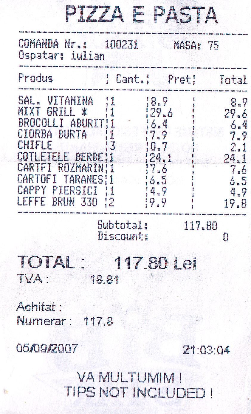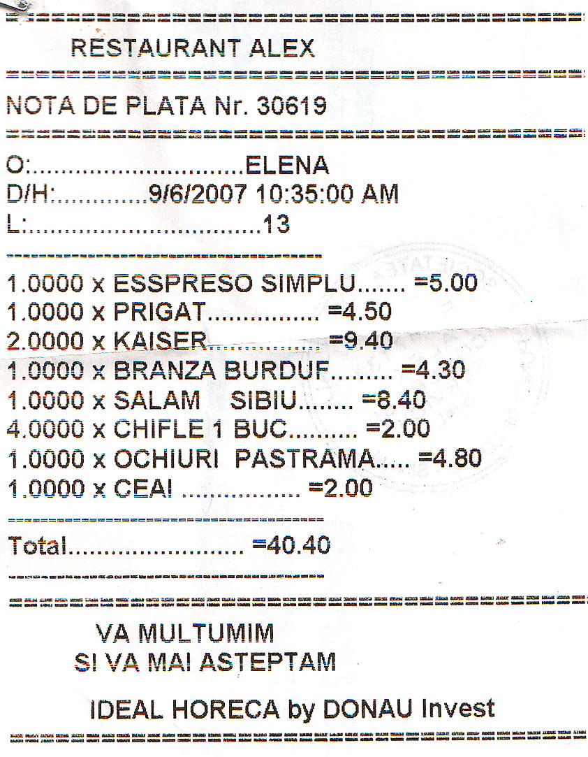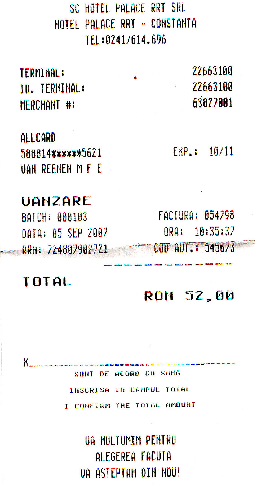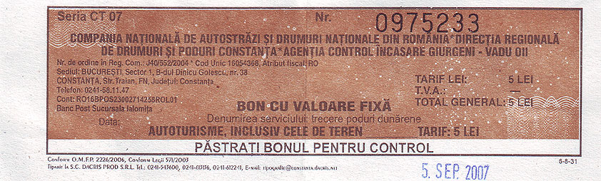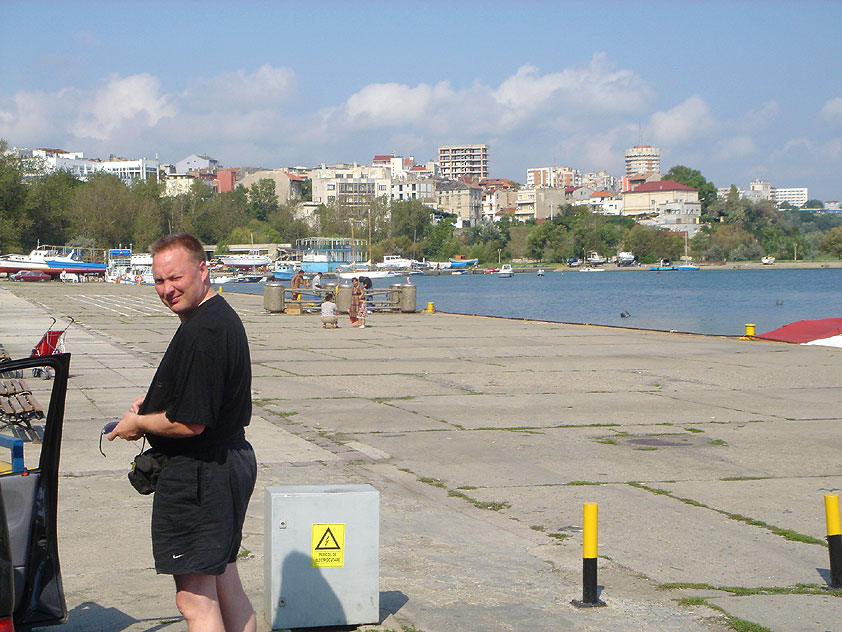 Pardon? Dollars. Good that Ed has some with him. I think it's a highway toll sticker, but find out much later that it's an environmentally technical certification of our vehicle (which he hasn't deemed worthy of one single look). Then, the taking-the-car-apart-business follows. Three ugly mustachioed types in uniform appear before us. OMG. They will most likely make our life miserable. But all of a sudden a woman, in the same customs uniform, appears before them and stops us! She is an overwhelming natural beauty, and she asks what kind of weird car this is, that we're in, with all those stickers on it and all. I get out enthusiastically, have her have a look inside, and take her to the front, where I proudly point at the sticker, explain it, and tell her the whole rally story. Three quarters into it she gives up. She raises her hands, stops me in midsentence, and then, somewhat apologetically, and with the most disarming smile I'll get to see this trip, says "Welcome to Moldova". I am in love instantly. With her and with this country. Free hospitality! It is a rare thing, in these parts. She goes to sit down on some steps by the roadside again, shoulders sagging, obviously unhappy with her tedious existance as customs officer. How we'd have loved to take her with us. The three mustaches look in our direction very jealously as we drive on, into a sunsplashed Moldova (this border crossing took us half an hour; so we needed 3,5 hours to get into Moldova from Ukraine, in total - I think we set a record!). So, across secondary roads we drive to Chisinău. They turn out to be okay, so all goes well. Still in daylight, we drive into the capital, where we hunt for an affordable hotel and a exchange booth. The local currency namely is a new one here again: the Moldovan lei. We find a lot of those booths, but they're all shut. Then, on a crossing littered with them (strange - this town does not look threatening, or like it's in the middle of a revolution or large demonstrations; but maybe this is BECAUSE there are that many there) we are halted by policemen. They check our passports and then fire up an utmostly friendly conversation about where we are from, what we are doing here, and how they can be of help to us. We are under the impression that they are overjoyed to finally meet someone - they're just plain bored. We learn that 1 of them studied in Paris, and he therefore speaks fluent French. Amazing. They even obligingly stroll along with us, athree, chatting, to an open exchange booth they point out to us, in a supermarket. We do decide to look around some more to compare exchange rates, and eventually end up getting it cheaper at a cash dispenser, further up. Then, we have dinner in an ex-cel-lent and cheap café and restaurant, about the only one we find open close by: 'Mon Café', it's called. On the way back to the car I suddenly spot what I saw in Ukraine before too: I spy a Dutch delivery van, with Moldovan number plates. 'Dijkstra Schilderwerken, Oosterwolde', this one has written on the side. I jot that, and the plates' number, down and will, upon return home, Google the company and write them, that their car is driving around Moldova. They will then tell me it is not stolen, but sold on, and be very amused, but. You never know, I think, when I fold the note away. Then, we billet ourselves, in Hotel Chisinău. This proves to be a dubious choice. For although, on the outside, it looks like a more picturesque, and therefore probably better hotel than the stalinist appartment blocks we see further up, inside it turns out to be the height of stalinist hotels. Friendly staff and wide marble stairs in the hallway, but there the comparison with a large country mansion ends. Above, on the floor guarded by an ageing lady behind a veneer wooden desk, the green, weathered (but meticulously vacuumed) carpet creaks, in a long, musty corridor with weathered plaster and yellowishly shining ceiling lamps, of which only three work. In the room is a large, broken fridge, and there is a bath and shower combination, but no hot water. Behind the toilet, through a hole in the wall, the pipes that run the entire height of the hotel building are visible. One can give morse signals to one's lower neighbours and such. The beds date back to the Great War and are fitted with ditto blankets. Further comfort is nonexistant. What do we care. We're wasted. We go to sleep, but not before I've paid the guards, downstairs, to guard my car, parked lonesomely alone on an enormous parking lot in front of the hotel. Day 11 09.03.2007: Chisinau-Constanza The following morning, after breakfast (in an enormous, dark party hall below and in the back of the building, where we are the only ones having breakfast and are served by an utmostly friendly lady who probably already worked there when the communists were still in power), and a short stroll through the hotel (during which, on the floor above the dining hall, we find all kinds of travel agencies, who rent office space from the hotel and have busy patronage - they organize travel to, predominantly, countries in the vicinity, such as Rumania, Ukraine, Slovakia and Turkey), we have a pleasant conversation with Peter, a Dutchman who turns out to have arrived here yesterday night having driven straight here from Holland. He is en route to Ukraine - just for fun, holidaying. He turns out to be a veteran in these parts and therefore strikes up a bond with Ed. I, meanwhile, buy a bottle of Chisinău beer off the beau-ti-ful woman behind the hotel bar, for home. Then, we head into town to change money for paying the hotel, and to buy souvenirs, and eventually do so in an underground passage with shops, where I proceed to leave my car papers, driving licence included, behind. Thankfully, they're still there when I return running, panting. I could kiss the salesman. I happily walk back to the Combo, with my papers and a colouring book with 'American' animals for my niece Emma. We d