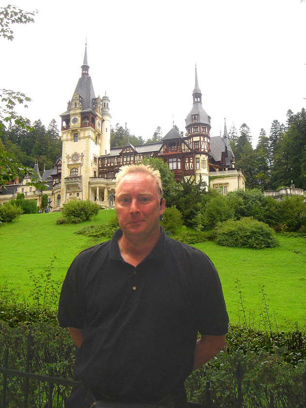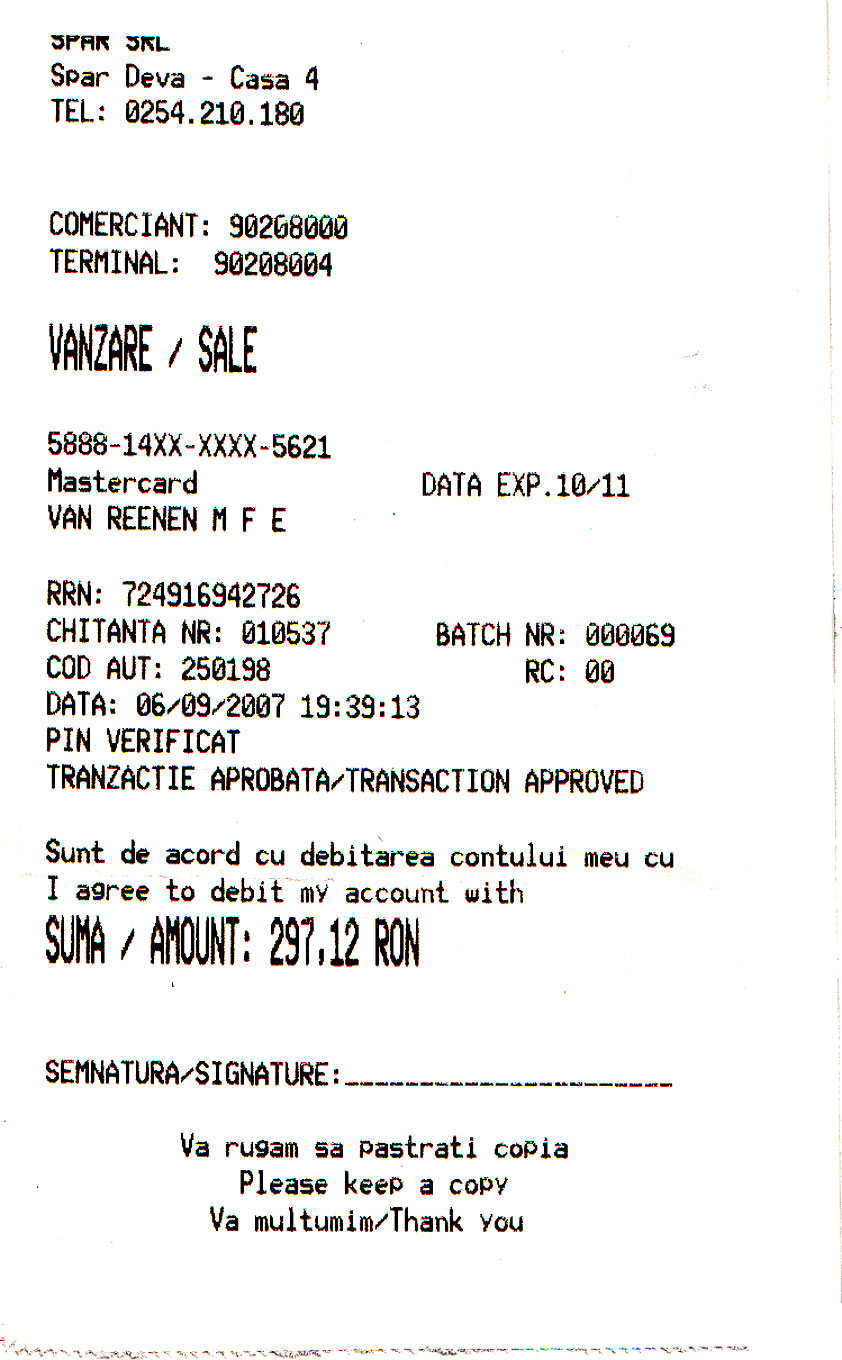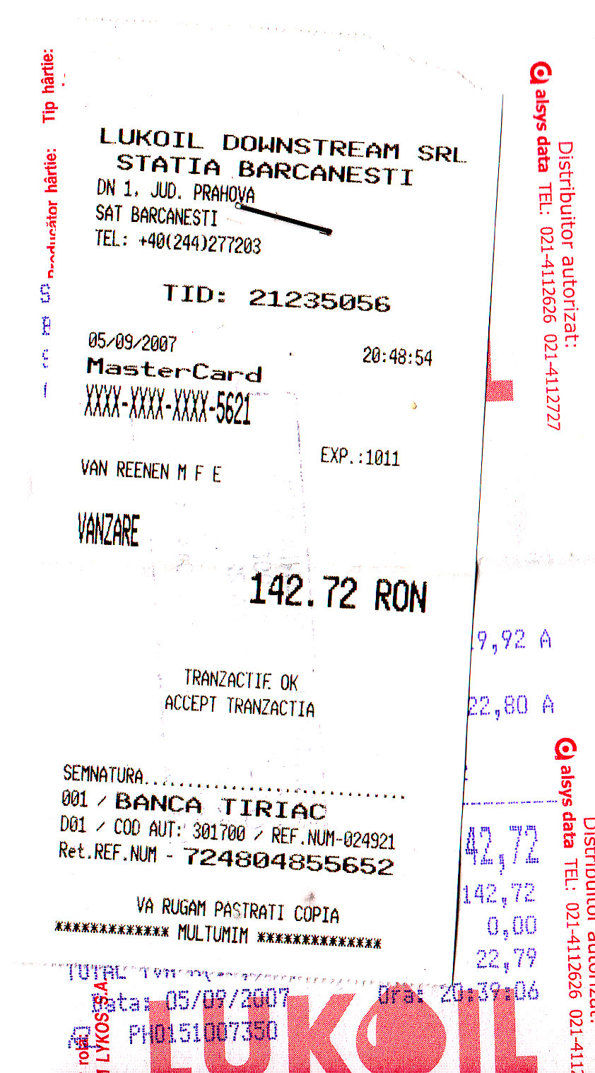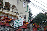 The boulevard runs into Ceauşescu's palace, and it, indeed, as stories about it say, is an utterly megalomaniac thing, constructed at the expense of the people. We do not venture into it, since there's too much we have to do today, but walk back parallel to the boulevard where, behind it, we find some leftover beautiful old houses and an old church surrounded by total ugliness (that's what, according to Ed, Ceauşescu did throughout Rumania, rather than demolishing them, he boxed in churches with ugly communist blocks, until they disappeared out of sight). Then we drive to the home of Claudio's mother, or rather, the homes of Claudio, Gaby and their mother. They're three, namely, large, square and detached, standing next to eachother on a plot of land some 40 by 333 yards large (with, of course, a fence around it), that Claudio once bought for a song and now is worth a fortune, despite the fact that it's situated right below the flight corridor for the smaller Bukarest airport. Along the way we drive by an Opel-dealer, where we therefore stop in hopes of mirror. Alas: two weeks delivery time. But it's coming down! I voice the expectation that we'll find it in stock in Germany, just before the Dutch border. Claudio's mother relieves us warmly (as does Ice, the husky-with-three-kids). She feeds us large quantities of pilav-with-chicken-and-paprika, feta-like-cheese, beer and Snickers-ice cream. We watch tv together with Claudio's mother in law, and her granddaughter (Gaby's daughter). On the news, we see that along the road leading from Iaşi to Constanza, more particularly in the Galazi region, everything's been washed away by enormous floods, that have done great damage in Moldova too. We seem to have made a clean but narrow escape. In the northwest of the country, meanhwile, a tornado is wreaking havoc, we learn. Way to go not! Before we leave, we talk to Gaby, just returned from work, and look around the other two houses. Then we drive towards the Carpatians, and to Sinaia. It's a mountain resort in the heart of Dracula country. We can hardly make it out, because it's dark and raining hard, but we notice we're in the mountains, since the road towards it juts upward sharply and it's full of S-bends, the temperature is dropping fast, and the air's a lot fresher. The town is packed with hotels, but we keep going up the mountain, under the false impression that higher up, hotels will be cheaper. This turns out to be the other way 'round: the hotels up top are much more expensive, because the locals assume that, if you end up there, you've already fruitlessly tried all lower ones, and will therefore be willing to lay down more money. We are, on the other hand, experiencing a wonderful bit of touristic route. We make our first try at Hotel Intim. That doesn't just sound wonderfully wrong, it IS: it's a 1-star hotel (that's proudly marked beside it, on a sign), that looks like the ghost villa from the Scooby Doo cartoons, and inside is exactly what you'd expect of a hotel in the Carpatians: creaking floorboards, long hallway, painting on the wall of a Transsylvanian ghostcastle-with-just-1-lit-window on it and bats around it, and a dusty counter at the far end of the hallway, with a bent, dusty, little man with a moustache and suspicious glance behind it. Does he have any free rooms. "No." That's all, folks. Pity! We drive on and end up in Hotel Alex, indicated everywhere wildly. It turns out to be a thieving mob. €50,-, for a double room consisting of four spaces: a narrow hallway, a bedroom, a small sitting room, and a toilet-shower combination. That sounds roomy, but everything's unnervingly low and narrow, the toilet runs permanently, the shower cabin is lurching to the side, and everything looks like it's in dire need of renovation. We are, nonetheless, so wasted that for today we don't give a hoot: time to sleep. Day 14 09.06.2007: Sinaia-Vorderhornbach The next morning I must, to reach the breakfast hall, move around the front of the building on the outside. This has advantages, because it's a real mountain morning: slightly humid, but fresh above all, with typical clear morning air, and this low mountain range before me is beautiful to behold, in the morning mist. Breakfast turns out to not be included in the price. Thieves. Then, I make matters worse by misunderstanding the menu. I interpret 'kaiser' as kaiserbrötchen, and order two. "Two rolls", I add to make certain. I further order some local cheese and sausage. What the little girl in pornographically sound traditional dress then brings me is 1 portion of cheese, and 2 portions of sausage, 1 of which enormous: that namely is the double portion of kaiser, I later deduce, from the bill. She also puts 4 rolls down - 'cause there are 2 in every portion, and she understood I asked for '2 bread'. Okay, my own fault, but I can't help thinking that there would have been less problems had the menu been more clear and the staff more linguistically educated. I have Ed, upon his arrival at the table, therefore make use of my sandwich filling, saves money after all. Oh well. We didn't wake with bitemarks in our necks, which is worth a lot. Then we make our getaway, to go and admire the palace of Rumania's first king, around the corner. Beautiful! And I'm saying that without us having been inside (given the horde of people waiting to take the tour, we don't think that's a pleasant plan, and we do think it'd be too time-consuming). It is a fairytale hunting castle, but most modest for a king. I decide to move to the toilet, when it appears along the road to the parking lot down the hill. There's a cleaning lady there to whom I hand some money. She hands me two sheets of toilet paper and points to the men's block. There, I discover that the bog is a French hole in the ground. I throw the two sheets in and walk out again. Shit. By the parking lot, there's a Bastion hotel. Better! I walk in and ask: "Do you have a toilet?" "No, sir." "No?" "On