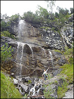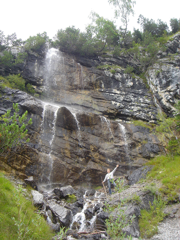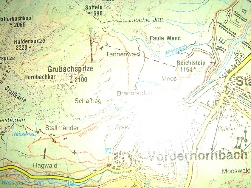 We safely walk into Vorderhornbach, and into Gasthof Rose. There, we are awaited by the gorgeous wife of the innkeeper. "Große Aufregung!" It turns out they already sent the mountain guides to find us, and they've driven up to the waterfall on a moped to see whether they could find us there yet. We probably missed them by seconds. They're recalled, and the staff of Gasthof Rose prepares an elaborate evening meal for us, even though the kitchen has been closed for some time already. Having showered (the shower jet is powerful and warm, in Gasthof Rose - bliss!), Ed already gone to bed, I go downstairs again, to have a beer with the waitress and the innkeeper. I apologize, on this occasion, for stealing glassware, back in the eighties. My apology falls on thankful ground. Wiedergutmachung. A good thing, in a village where old Adolf still adorns many a mantlepiece. I learn two lessons, before I lay me down to rest: good shoes, and never start a climb like that in the afternoon. Always do so in the early morning.