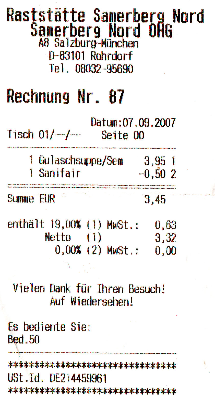 When, in the middle of the night, we roll into Austria, I'm behind the wheel once more. It's raining cats and dogs by now, and Austria too, turns out to be larger than ever suspected. By the time, just after dawn, we arrive at the German border, we have already experienced that Austria also has a morons' parade (that's what I always call rush hour traffic in Holland; you really get to notice, after a quiet taxi nightshift, that around six thirty in the morning that morons' parade starts, of fools driving to work in an idiotic and lifethreatening manner). In Germany (we already count two borders where we've been waved on without trouble upon presenting our Dutch passport: this happened both at the Rumanian-Hungarian as well as at the Hungarian-Austrian one, and this Austrian-German one doesn't even exist anymore, but for a sign) we halt at a petrol station and the tears well up in my eyes at the treatment I get from the service station attendant.