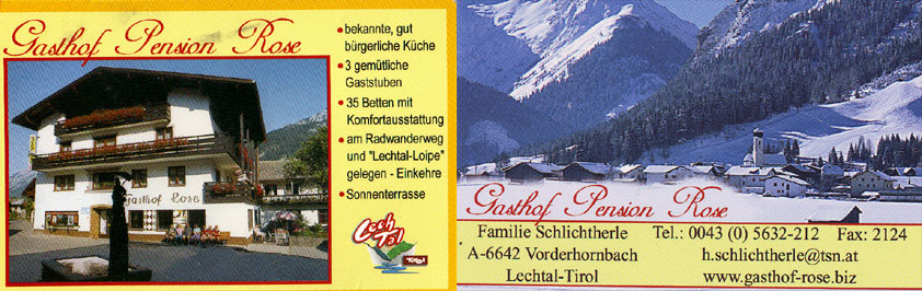 We drive this most beautiful part of route openmouthed. For even during those schooltrips I had not rode down such a pretty road: we couldn't have, back then, with that big Belgian touringcar. This is the kind of road that, in real wintery circumstances, simply gets closed, and all you see looks like a Märklin miniature railway - all, but for the mountains, for I haven't seen any miniature whatsoever come close to them the way they tower above us now, here, in all their majesty. Now we finally know where those ridiculous little trees came from: they grow here! And when, alongside Gasthof Rose, I get out of the car in the middle of Vorderhornbach, that is the moment of my victory. I am overcome.
